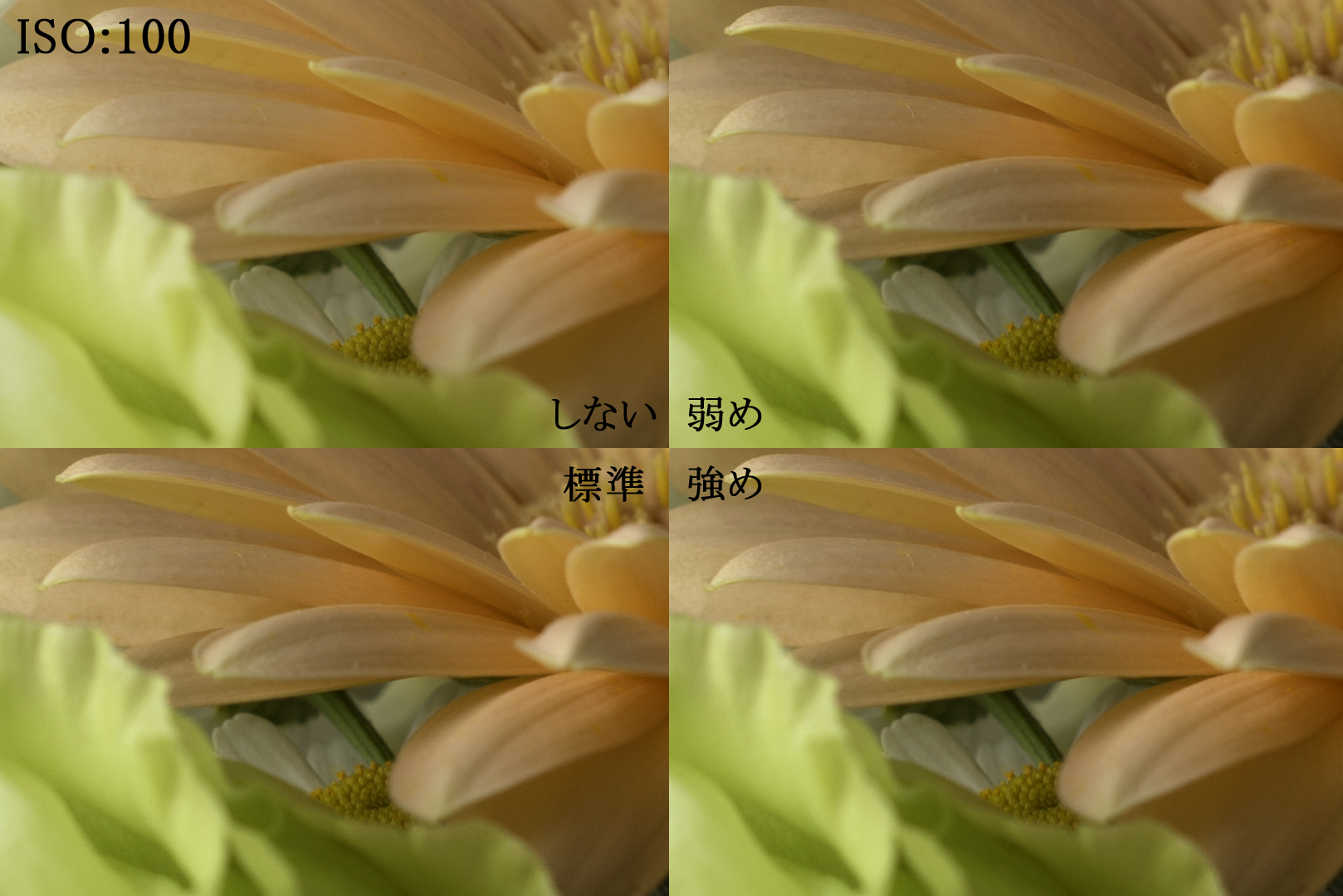 ISO感度:100では、「高感度ノイズ低減」の設定による違いは感じられません。