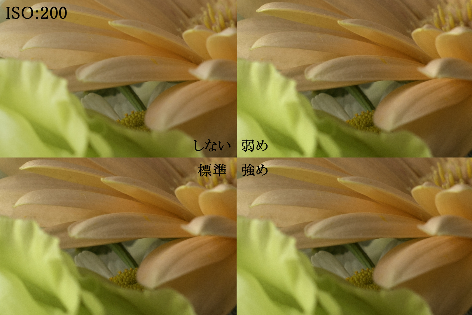 ISO感度:200でも、「高感度ノイズ低減」設定による違いは感じられませんでした。