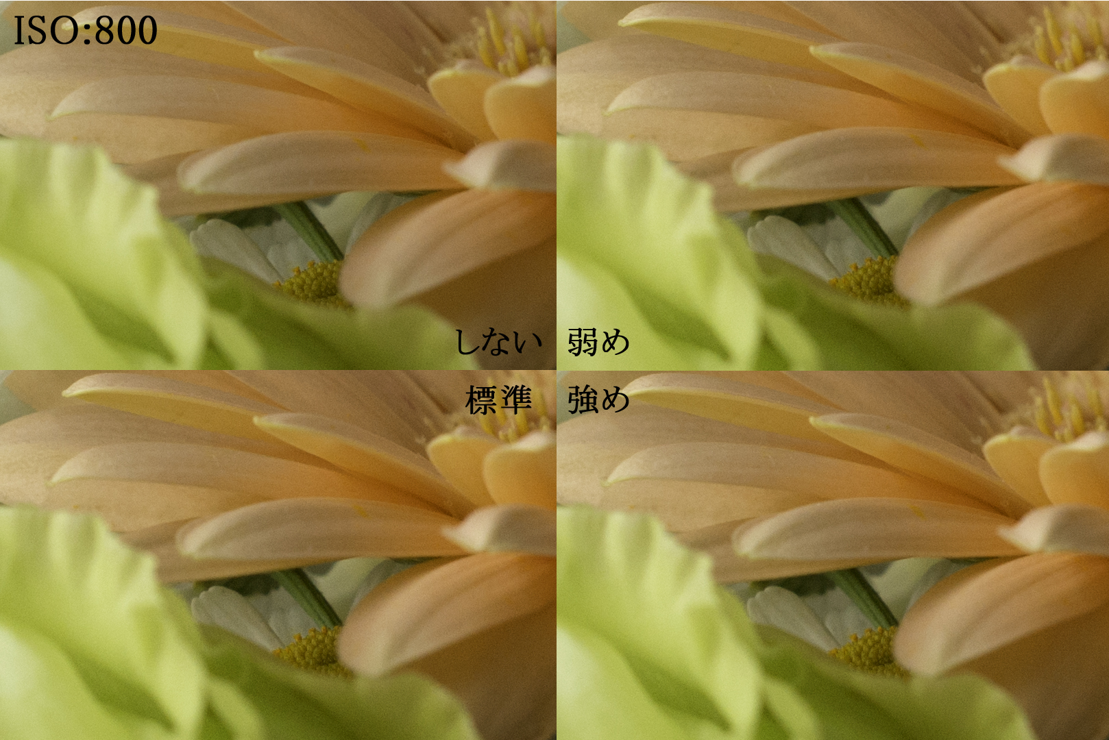 ISO感度:800では、「高感度ノイズ低減」は、「標準」か「強め」がよさそうです。