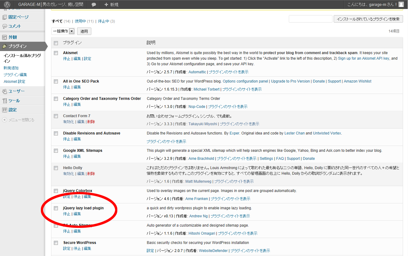 設定は簡単でまずは、「ダッシュボード>プラグイン>新規追加」で「jQuery Image Lazy Load WP」を検索して「今すぐインストール」します。