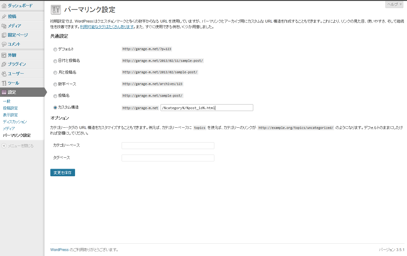 設定 → パーマリンク設定